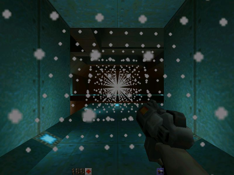 If your particles look like nice round discs, then your hardware supports a gl extension for point parameters. By default Quake2 will try to render particles using points but it needs the extension to be supported so that it can specify a diameter for the points. You can turn off this rendering method by setting gl_ext_pointparameters to 0. Now your particles should look like ugly squat crosses, this is what Quake2 does when point parameters are not supported. It creates a texture internally when the ref_gl initializes and then maps that onto little triangular polygons in order to render the particles. Have a look at this code from the top of gl_rmisc.c |